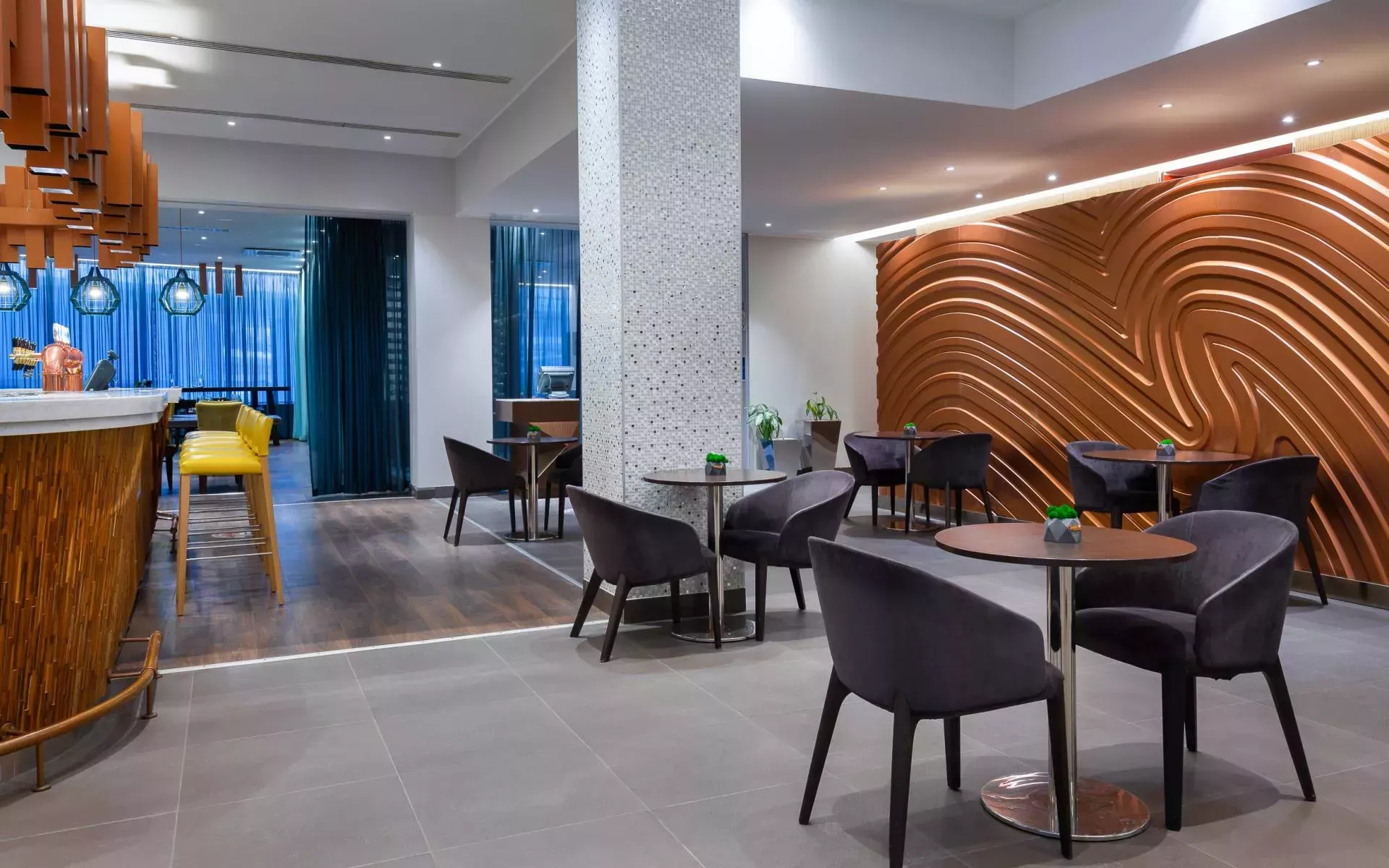 Лобби-бар расположен на 1 этаже отеля, представляет собой идеальное место для тех, кто желает насладиться вкусным кофе и приятной атмосферой в любое время суток. Бар предлагает гостям возможность отдохнуть после долгого перелета, встретиться с друзьями или провести деловую встречу в неформальной обстановке.