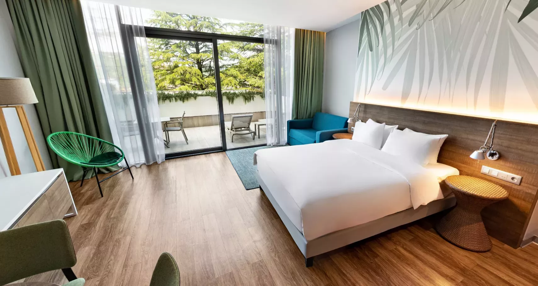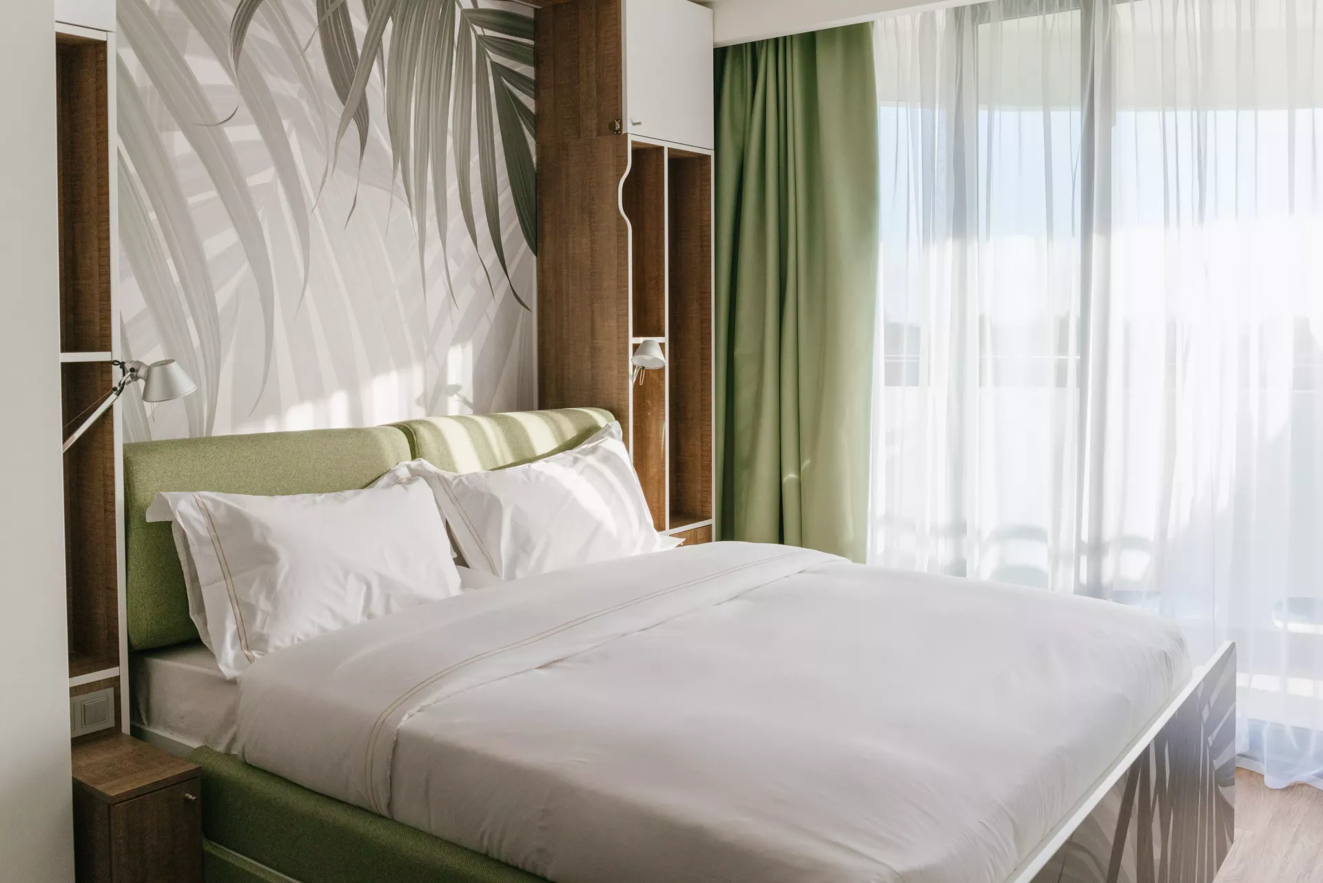 Насладитесь видом на цветущий сад отеля и пением птиц в нашем номере Студия с видом на парк, наличие балкона позволит вам расслабится на свежем воздухе, не выходя из своего номера. Кровать-диван трансформер позволит иметь больше свободного пространств