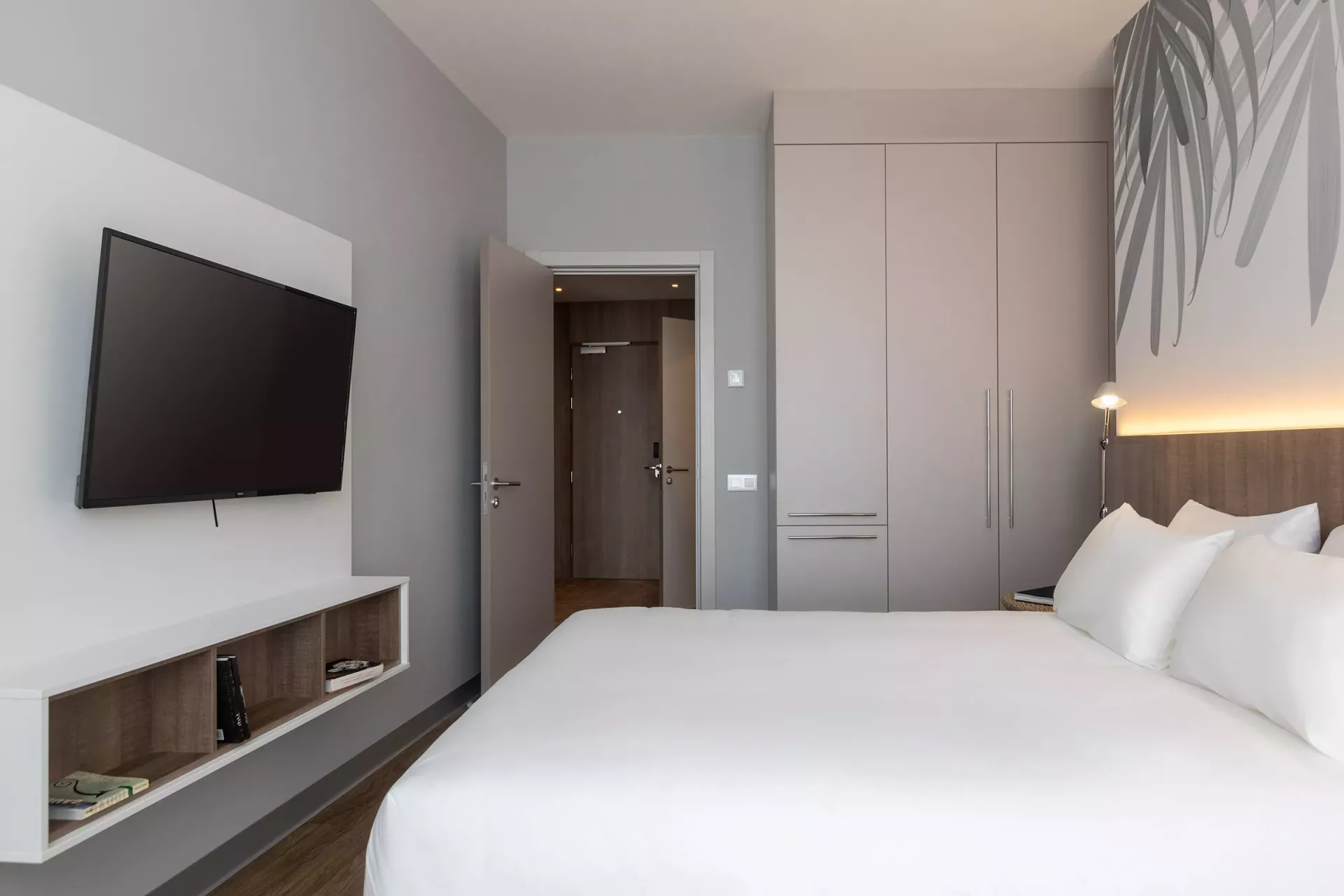 Улучшенный апартамент с одной спальней и балконом, оборудованный комплектом кухонной мебели и обеденной зоной позволит провести время с семьей, наслаждаясь пением птиц из парковой зоны нашего отеля.